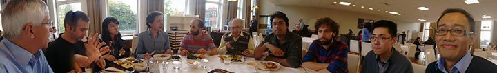 The Birmingham Theory Group at lunch, September 2015. From left: Achim Jung, Dan Razvan Ghica, Koko Muroya (visitor), Bram Geron, Paul Levy, Steve Vickers, Neel Krishnaswami, Cory Knapp, Chuangjie Xu, Weng Kin Ho (visiting alumnus).